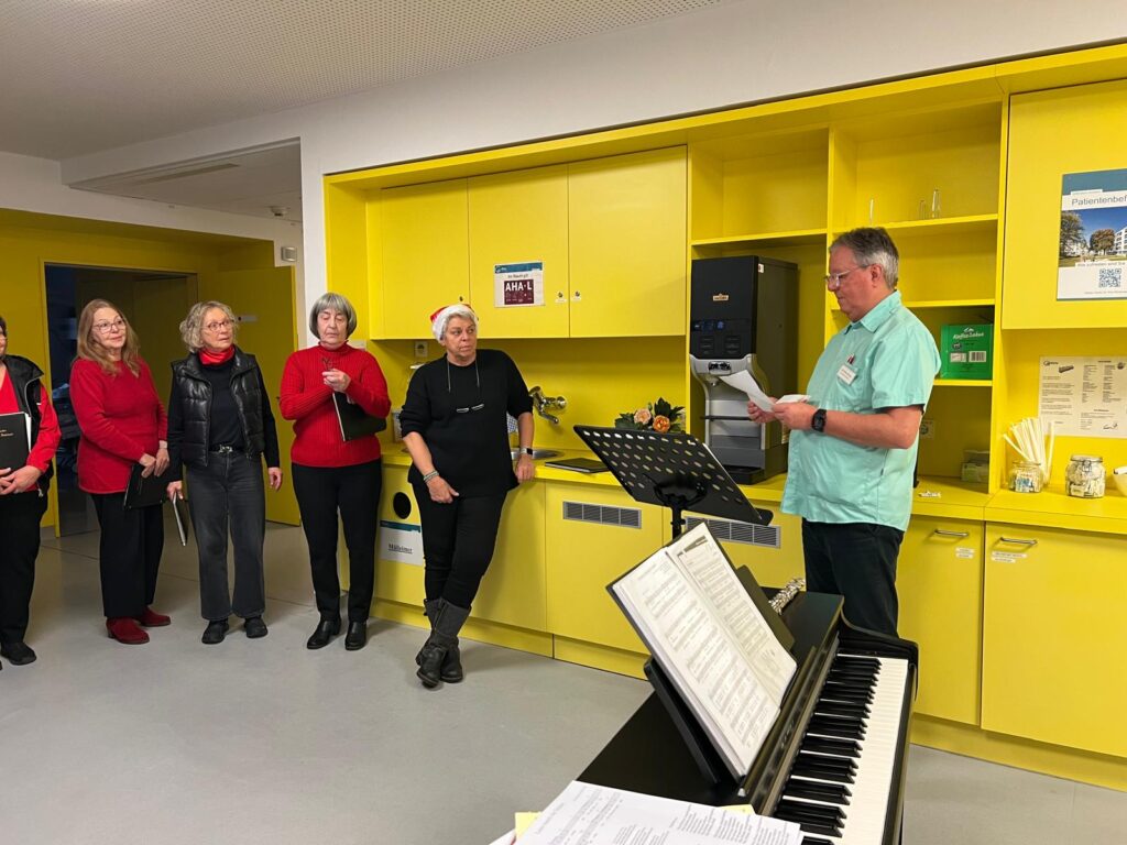 Schon traditionell, vor Weihnachten hat der Popchor „Elle&MEN´ts“ des Sängerbundes Sinsheim-Rohrbach Weihnachtsliedern im Aufenthaltsbereich der Palliativstation, unter der Leitung des Dirigenten Herbert Bromberg, zum Besten gegeben.